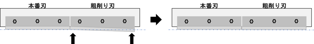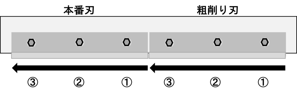 粗削り刃から本番刃に変えた後は微調整でブロックを削っていき、刃が悪くなったらズラしていく